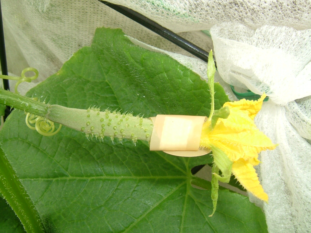 とりあえず、絆創膏で補修しました。ああこれからどうなるか・・・・はたして我が家の食卓に自家製きゅうりは出て来てくれるのか!!こうご期待!!