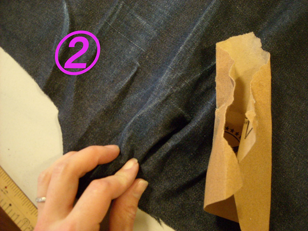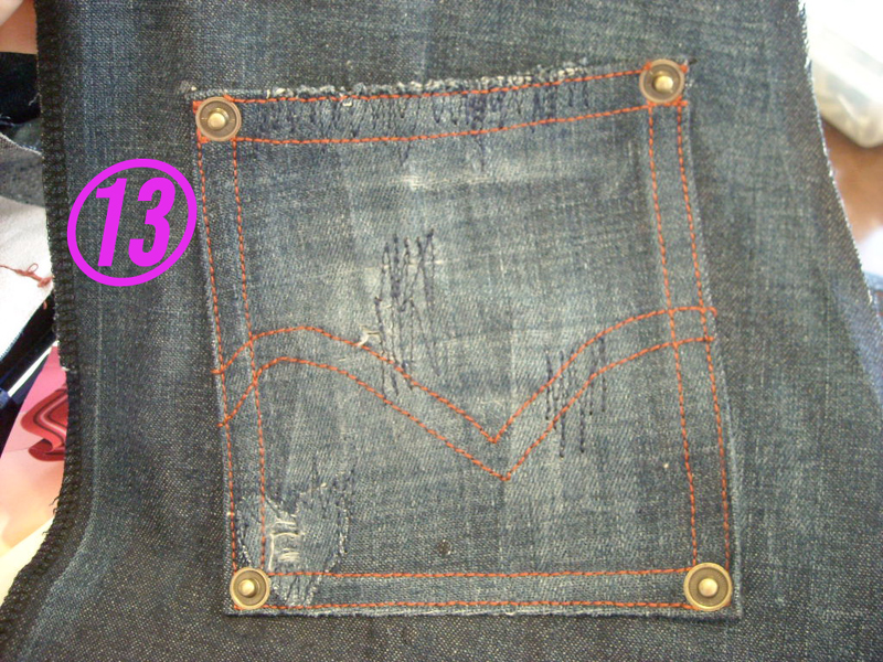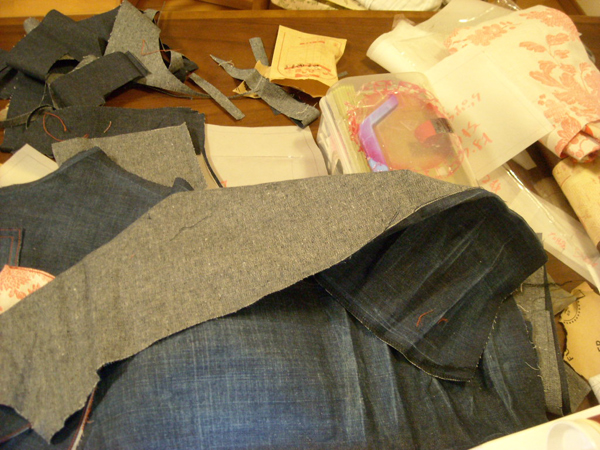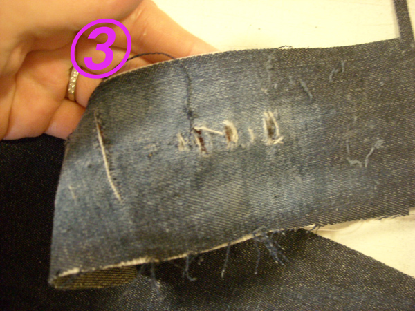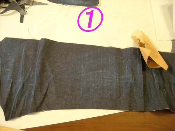 まず生地のジーンズは新しいので、カットして