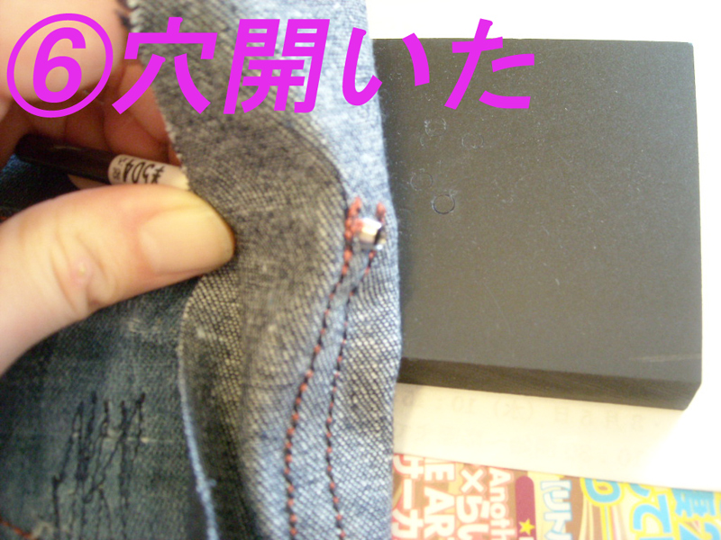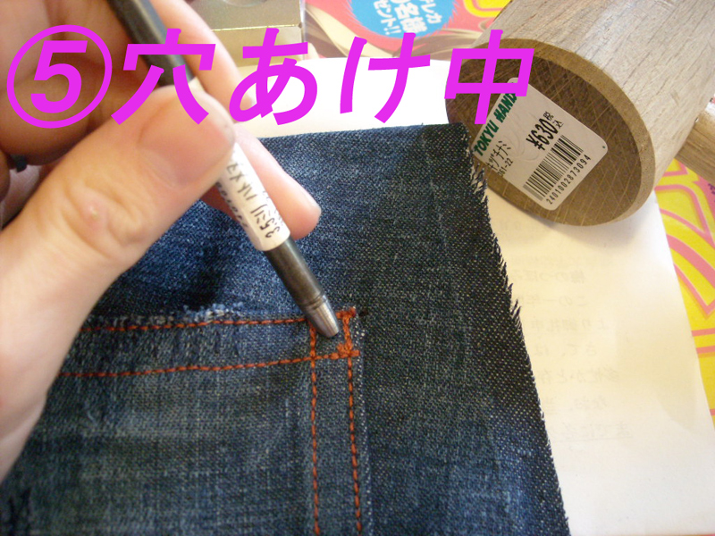 実際はホックの部分ですが、補強&飾りのドットします。