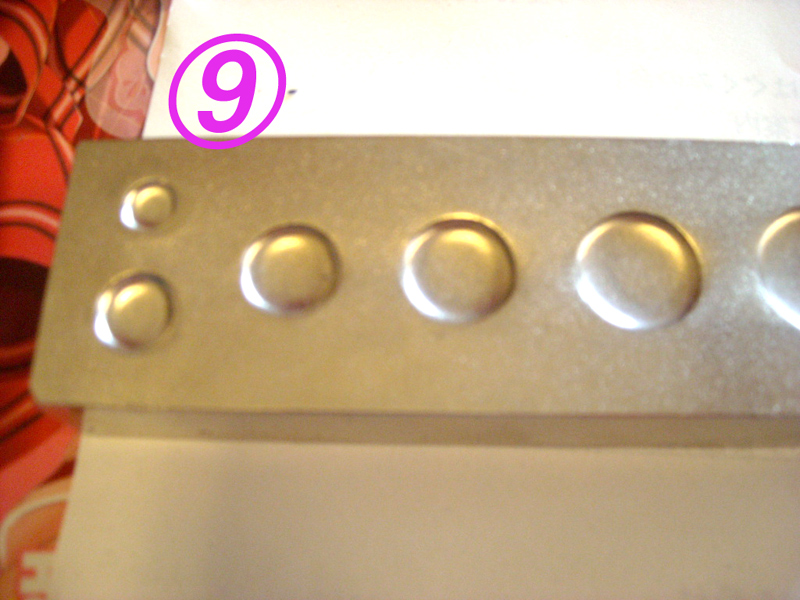 器具を被せて、カシメます。