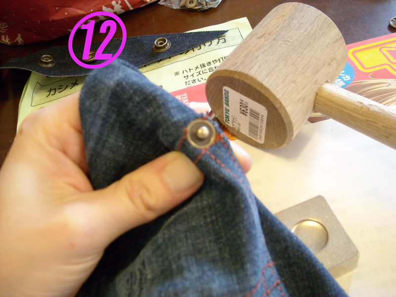 画像⑩から布→①の右のホックを挟んでるのが