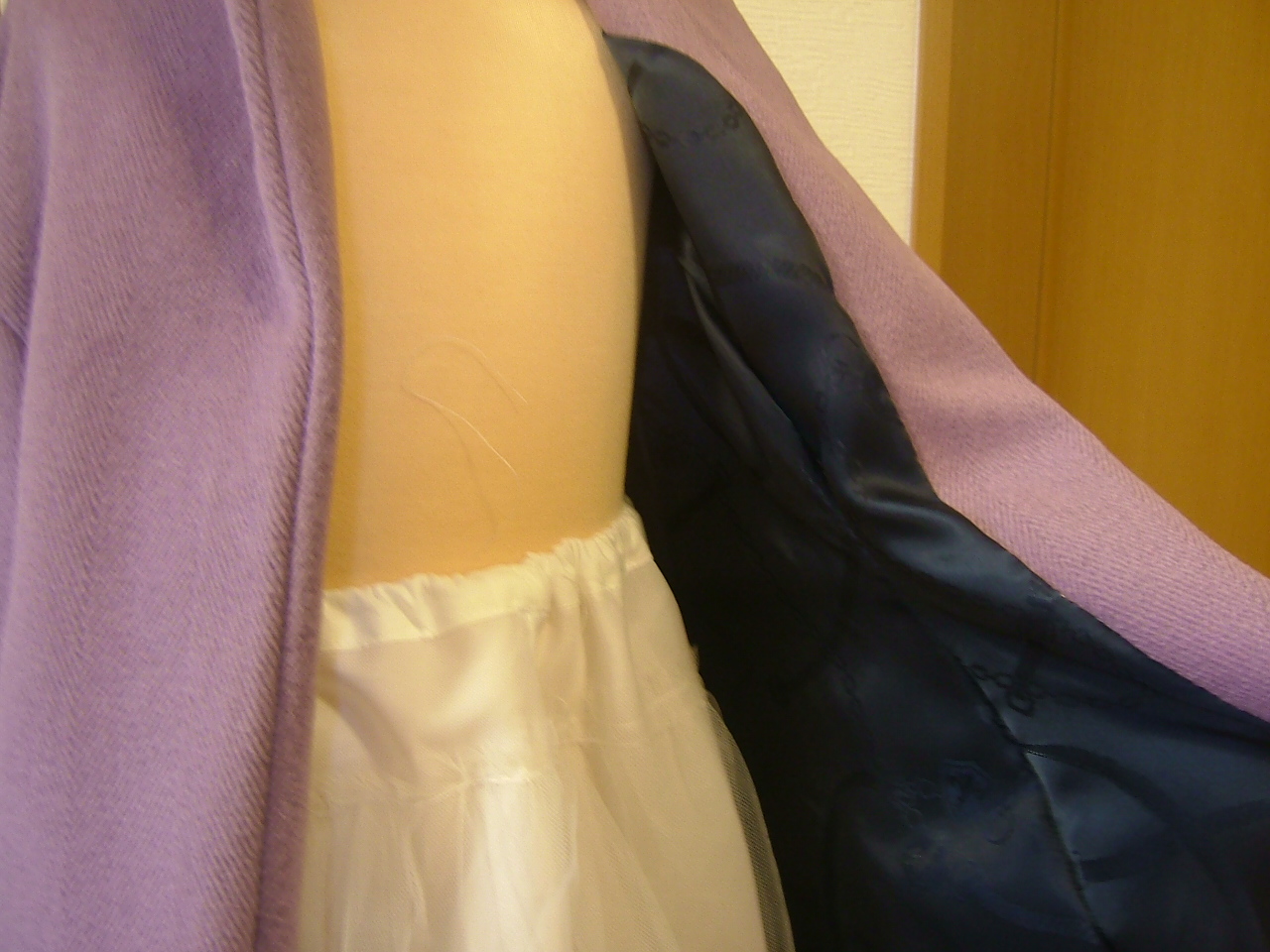 後ろアップです面倒でしたが、裏地付けました。裏地付けないと寒そうやし、なんか貧相なんで・・・